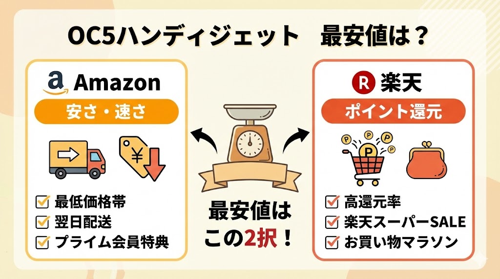 【結論】OC5ハンディジェットの最安値はAmazonか楽天!