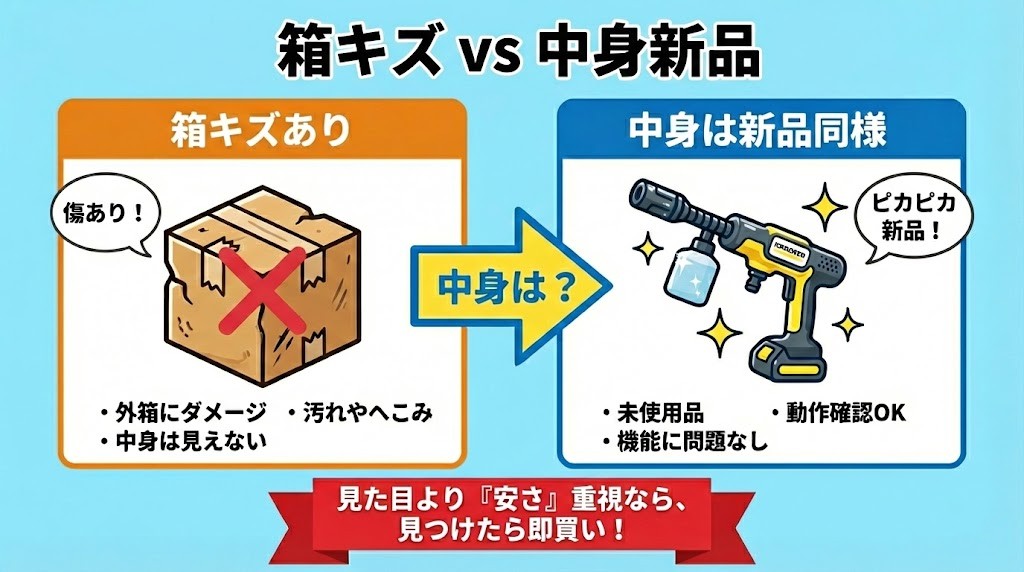 「箱のキズは気にしない」という人には、アウトレット品が最強の選択肢です。