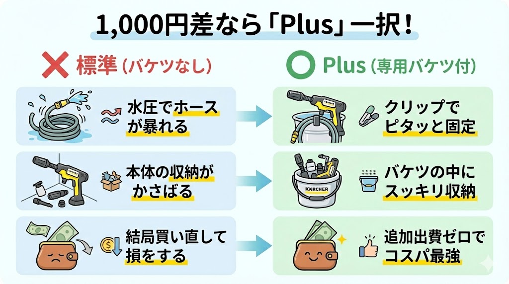 - 1,000円差でも「Plus(バケツ付)」を選ぶべき理由