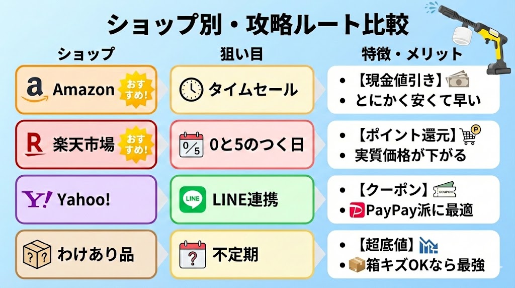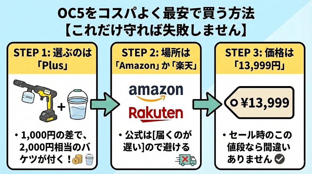 【まとめ】ケルヒャーOC5ハンディジェットは「自分に合う最安値ルート」でお得にゲットしよう